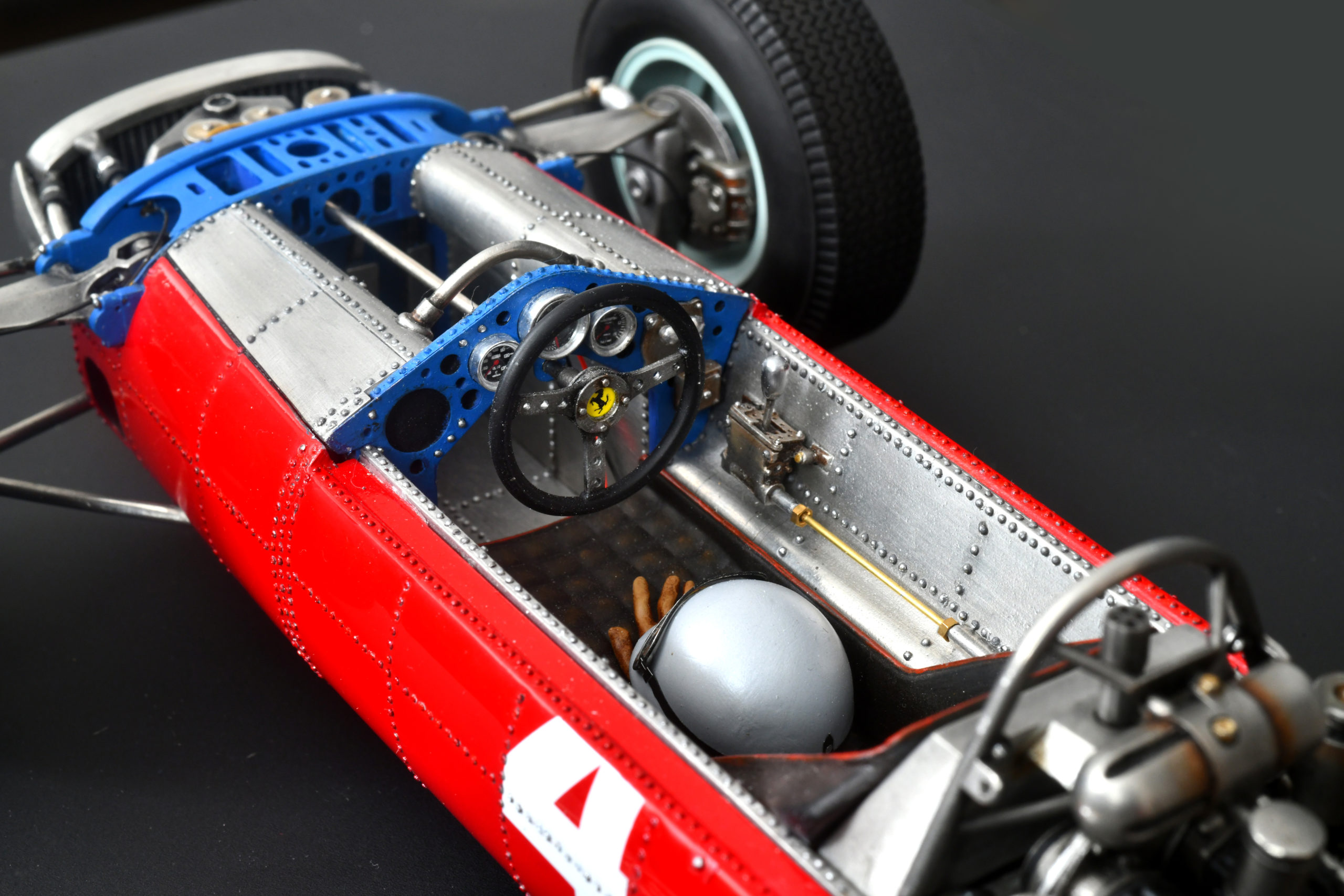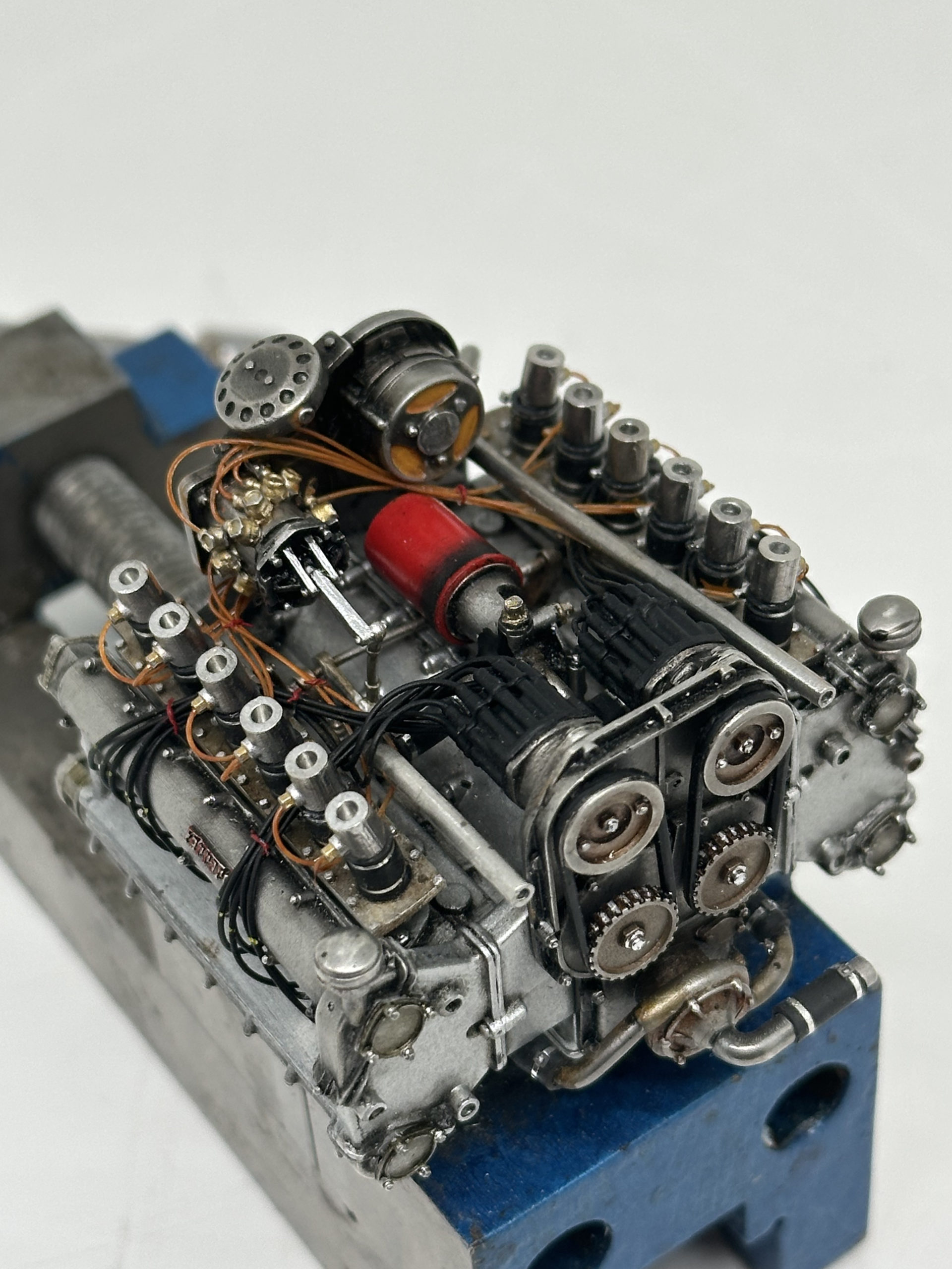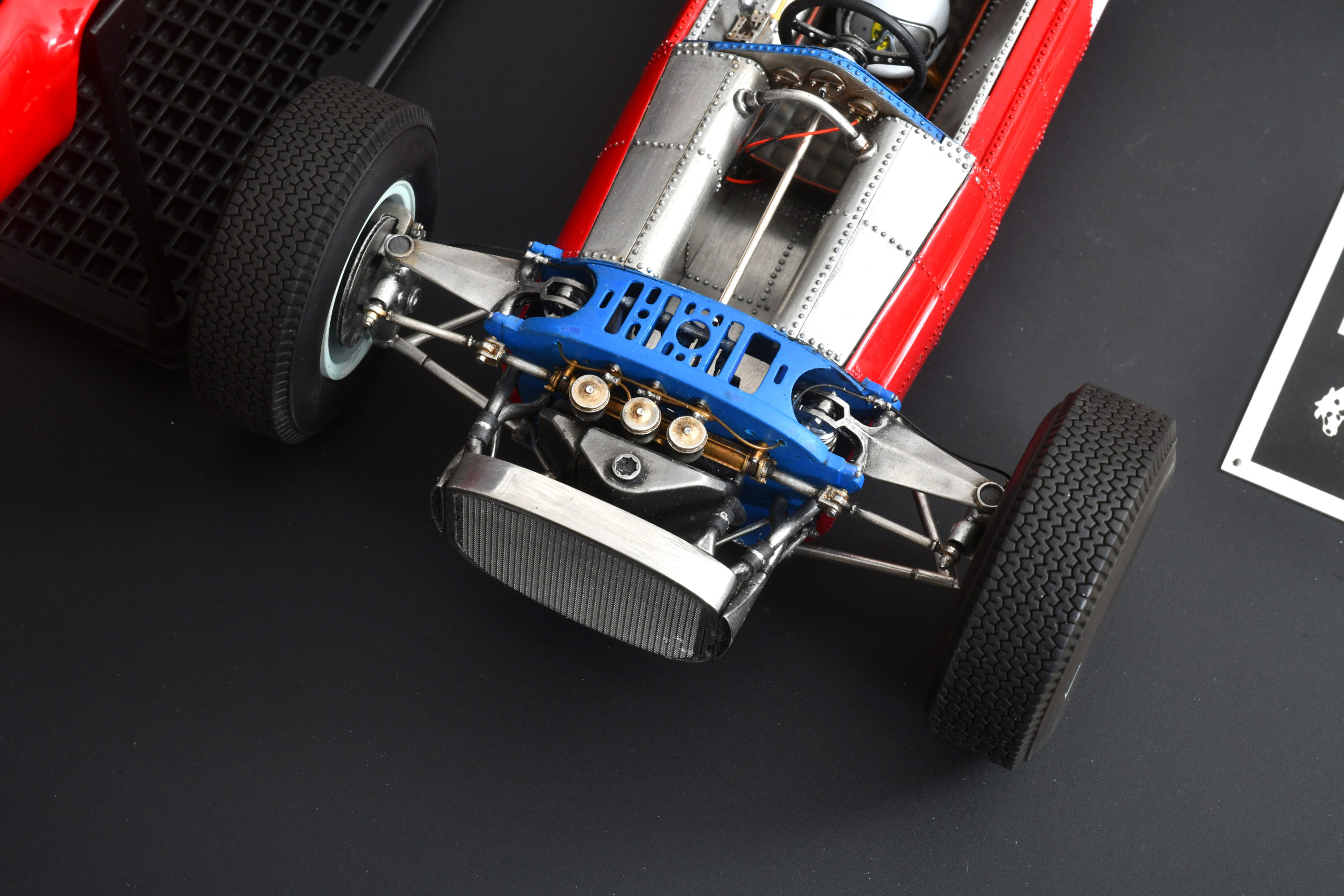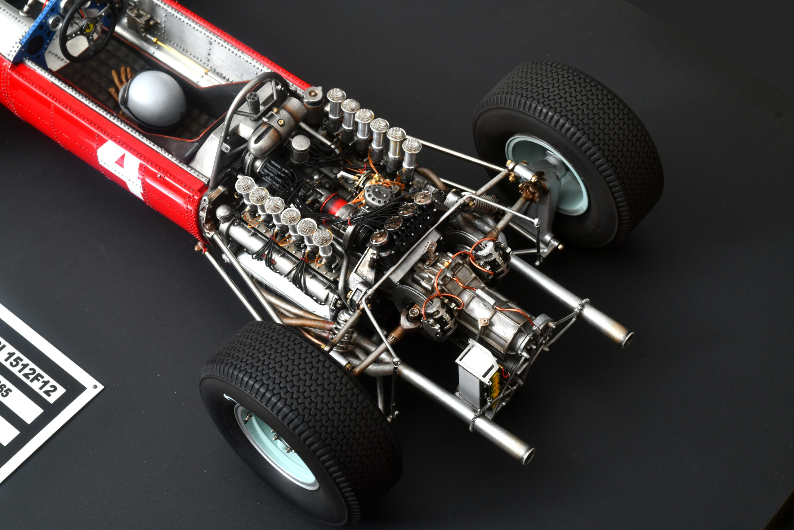 Despite the successes scored with the V8, it became clear late in the season that it was just a stop-gap before an all new 12 cylinder racer was to take over. Designed by young engineer Mauro Forghieri, the V12 engine had an angle of 180 degrees, but should not be confused with a boxer engine, which features a completely different crankshaft design. It was extremely compact and despite having four more cylinders it fitted in a 158 chassis. With 24 plugs, four distributors and four coils it was a very complex engine, initially good for around 220 bhp. Its biggest advantage was the low centre of gravity of the flat configuration, which positively affected the handling.