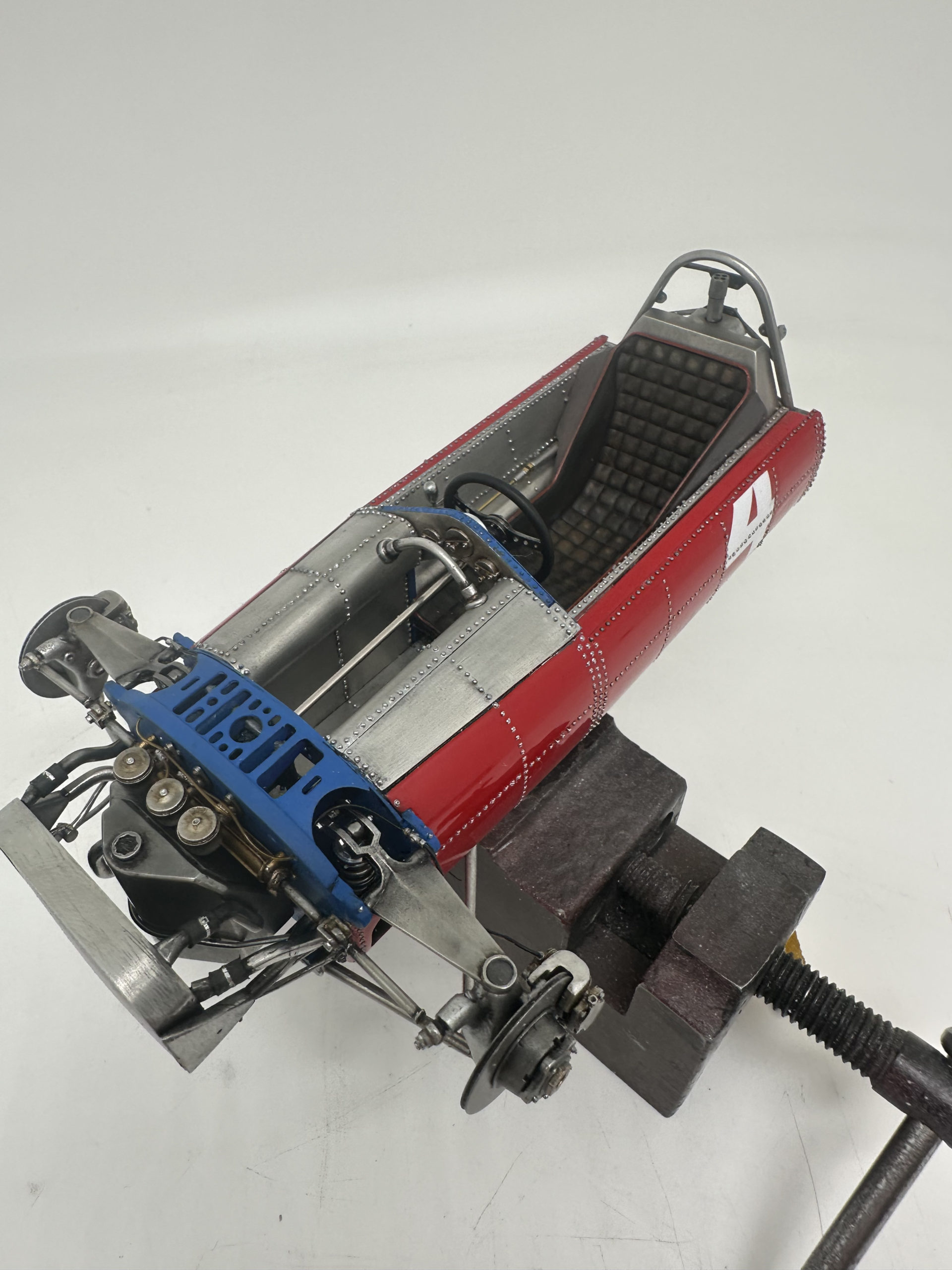 Ferrari started off the season with the latest evolution of the V6 engine that had proven so successful in 1961, but was now outclassed by the Coventry Climax and BRM V8s. With the monocoque Lotus chassis setting new standards in rigidity and lightweight, Ferrari required a powerplant that was more than on par with the Brits. Launched a few races into the season the all new 1.5 litre V8 proved to be just that. In the hands of multiple motorcycle World Champion John Surtees, the ‘158’ was a frequent winner and brought Ferrari their second world championship of the decade. To this day Surtees is the only rider/driver to score World Championships both on two and four wheels.
