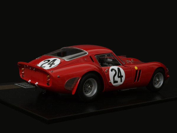 The Ferrari 250 GTO, driven by Jean Blaton (Beurlys) and Langlois von Ophem exiting Mulsanne Corner during the 25 Hours of Le Mans race, Le Mans, June 1963. The car, entered by Ecurie Francorchamps, finished second overall and first in GT.