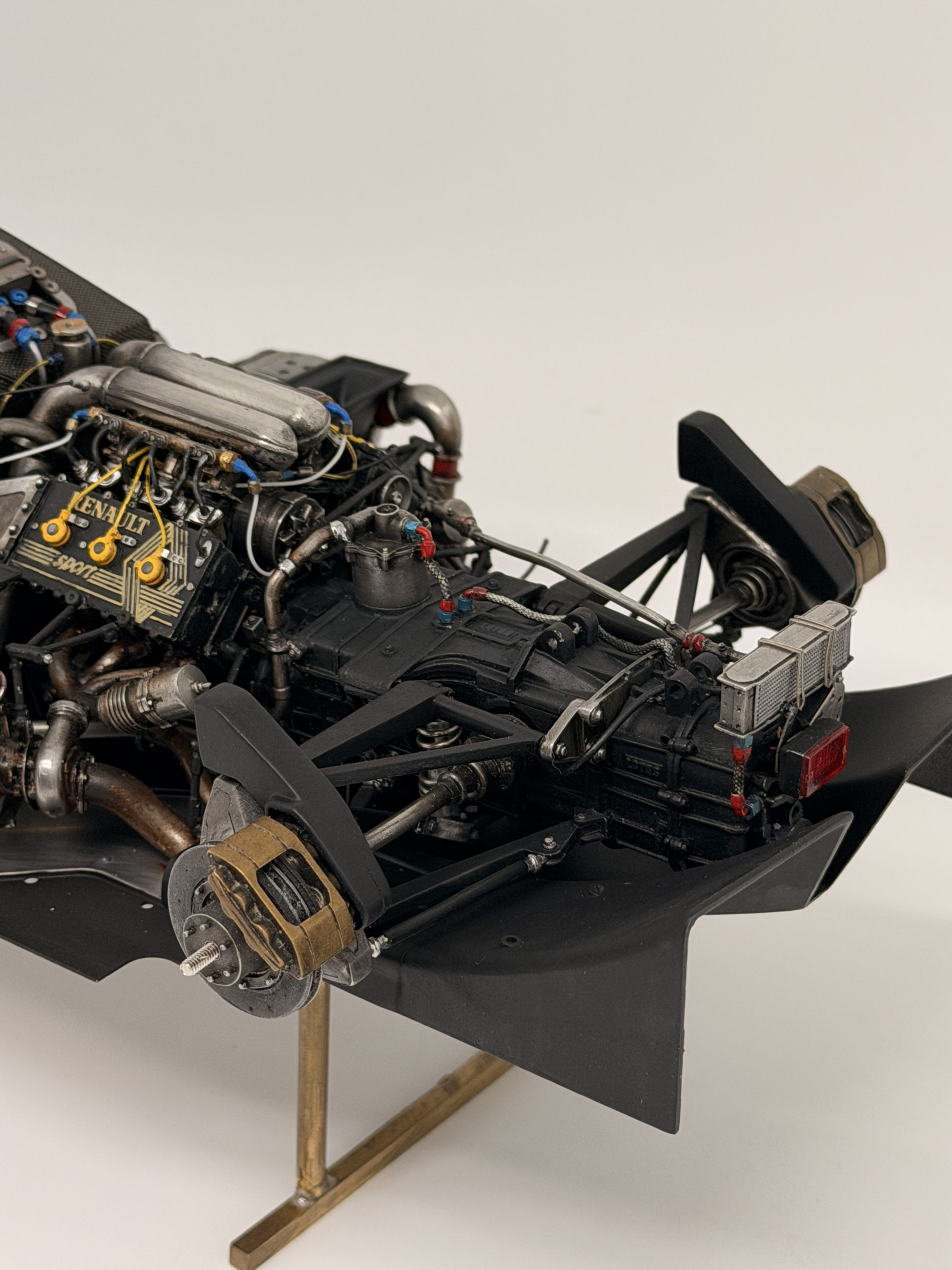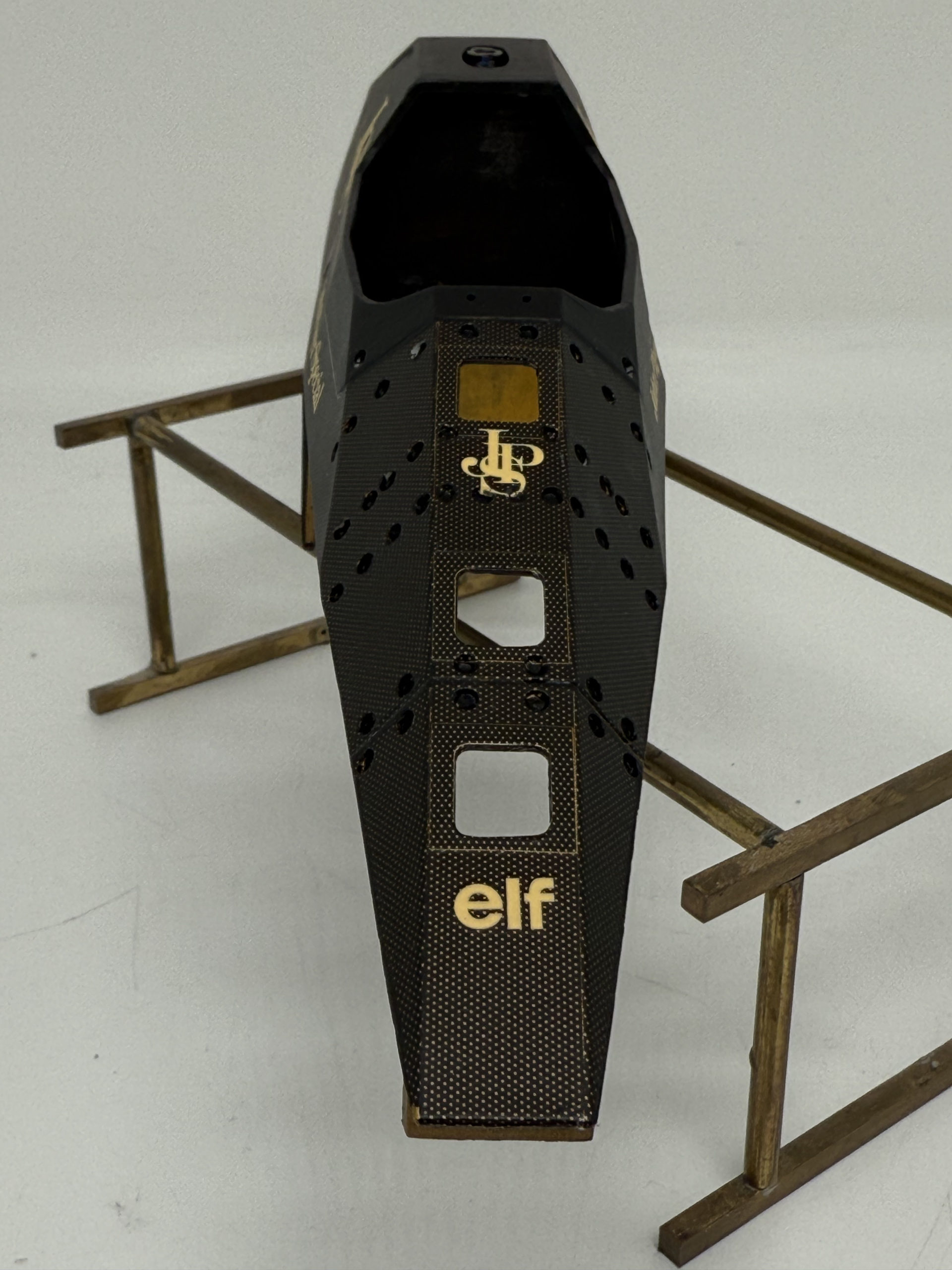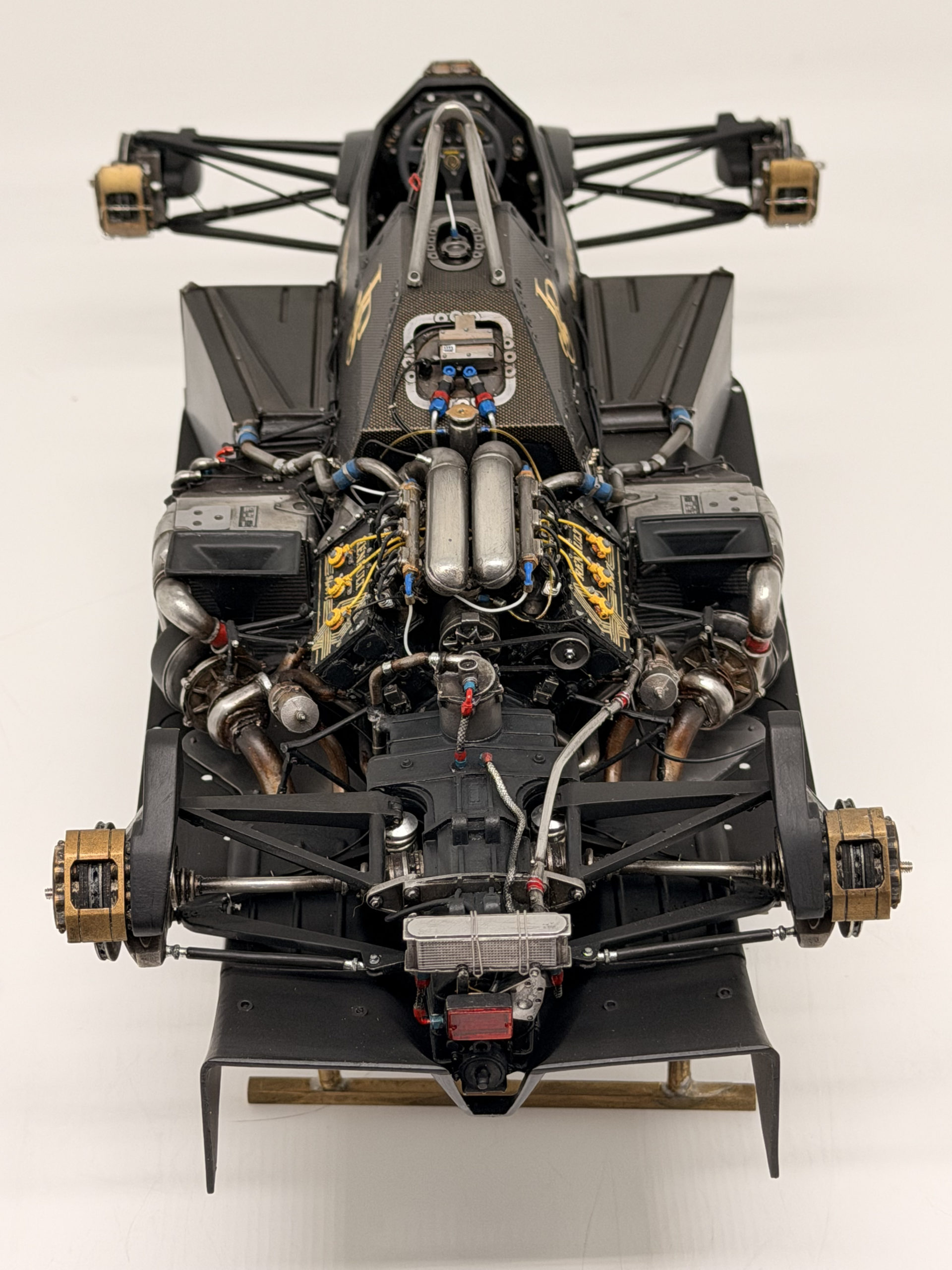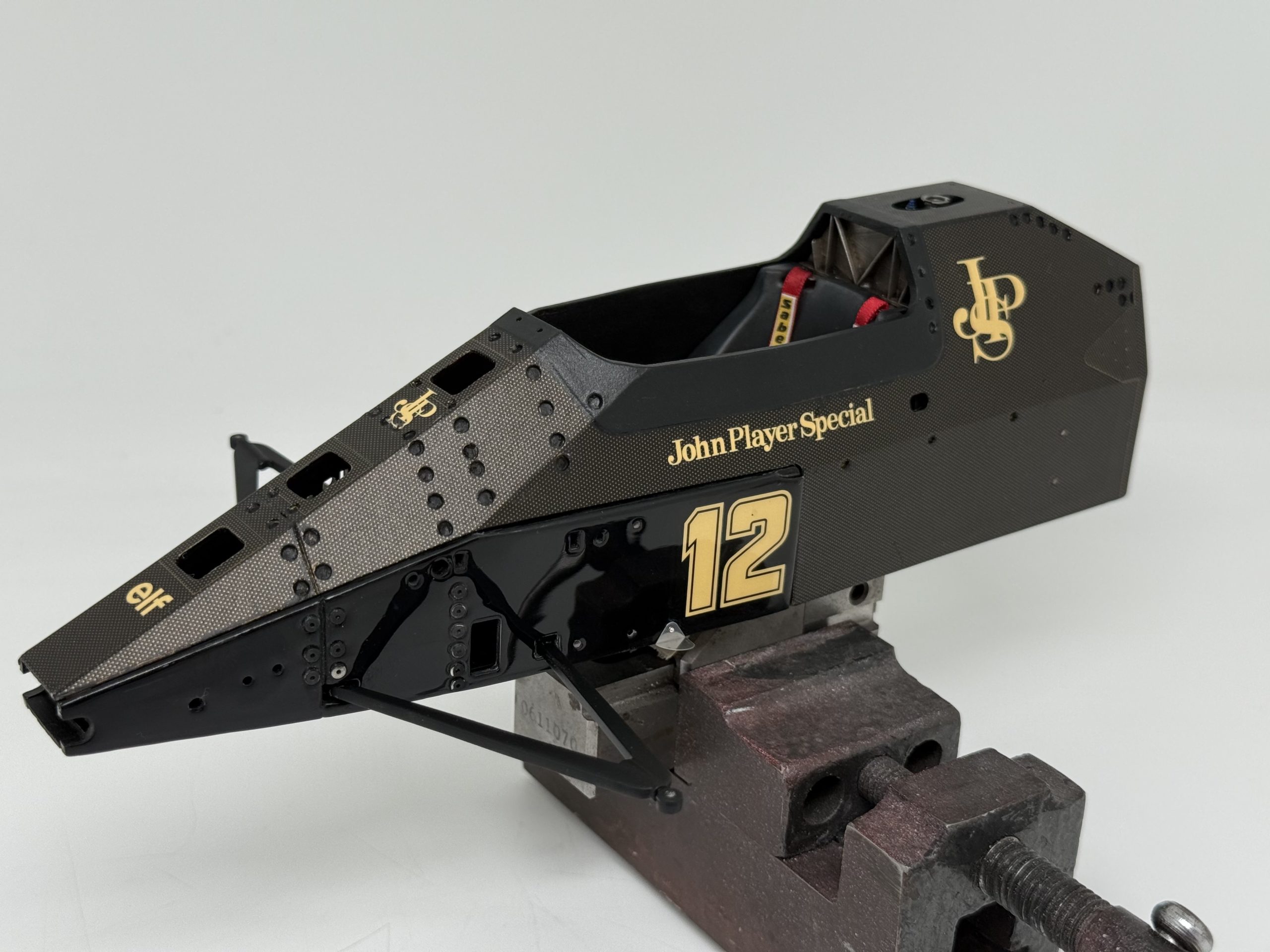 The 1985 season and is best remembered for delivering Ayrton Senna his first ever Grand Prix victory during a torrential downpour at the Portuguese Grand Prix in Estoril. This black and gold John Player Special liveried machine was powered by a 1.5 liter turbocharged Renault V6 engine that produced over 800 horsepower and featured innovative aerodynamic elements like mini winglets on the sidepods to improve stability and downforce. During the historic 1985 Portuguese Grand Prix Senna started from his maiden pole position and demonstrated unparalleled mastery in the wet conditions by leading every single lap and finishing more than a minute ahead of second place Michele Alboreto while lapping nearly the entire field. The car was widely considered to have the best handling chassis of the season due to its exceptional braking and turning capabilities which allowed Senna to maintain a dominant pace even as other top drivers spun out of the race. This victory at Estoril remains one of the most iconic performances in motorsport history and marked the true arrival of Ayrton Senna as a global sporting icon and the undisputed master of wet weather driving.